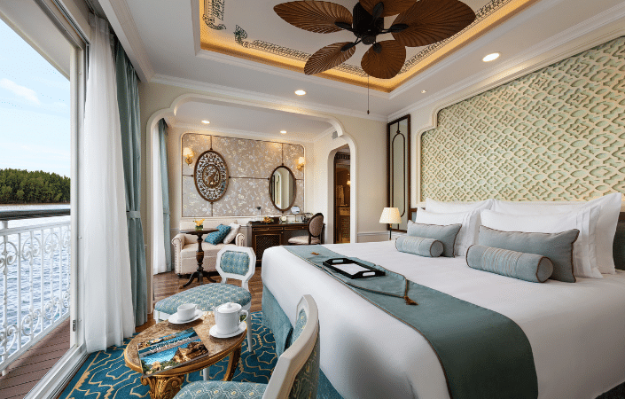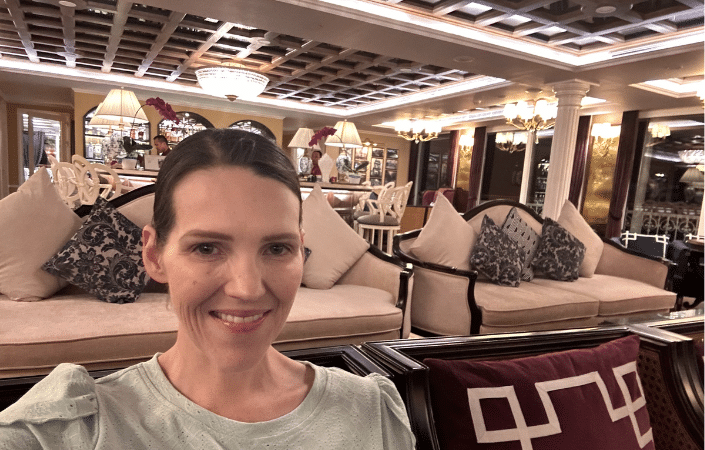 From the moment Kelly stepped onboard, it was clear this was not a uniform, one-size-fits-all river ship. Every Uniworld vessel is individually designed, with interiors that reflect the destinations they sail through, richly layered décor, bold colour, original artwork and carefully curated details that give each space a strong sense of place and personality.
