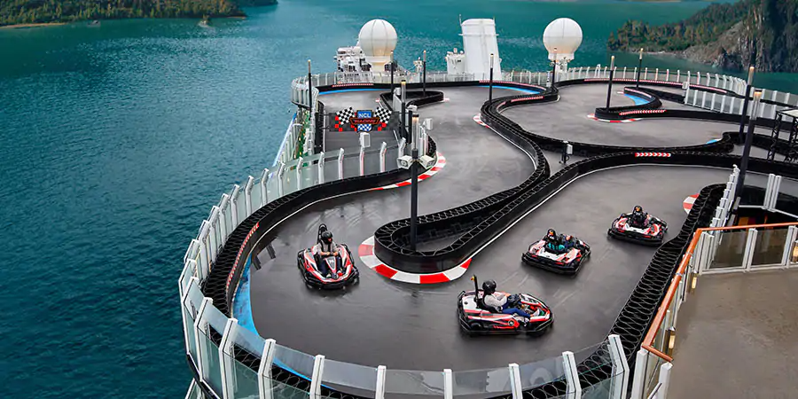 Find your happy place on board Norwegian Joy when she cruises from the west coast to Alaska, the Mexican Riviera, Pacific Coast, and Panama Canal with departures from Seattle and Los Angeles. Or join her in The Caribbean, Bahamas, and Bermuda from Miami, New York, Orlando, and Jamaica. Enjoy a rush like no other as you race in the middle of the ocean on a thrilling two–level race track. Immerse yourself in all the wonder of a virtual world in the Galaxy Pavilion. Be pampered in luxury in our spacious and beautifully appointed accommodation. Explore the wilds of Alaska including pods of whales up close in untouched Icy Strait Point. Enjoy holiday experiences that will delight your senses and calm your soul on Norwegian Joy.