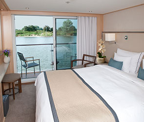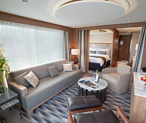 Two Explorer Suites feature spectacular 270° views with a private wraparound veranda. Veranda Suites feature two full rooms with a veranda off the living room and a French balcony in the bedroom. Enjoy the indoor-outdoor Aquavit Terrace at the bow of the ship, or relax on the Sun Deck. These “green” ships, featuring energy-efficient hybrid engines, solar panels and an organic herb garden, were named to honor prominent members of the Norse pantheon. Each ship carries 190 guests in comfortable, understated elegance, with hotel-style beds and amenities like 40” flat-panel Sony TVs and in-room refrigerators.