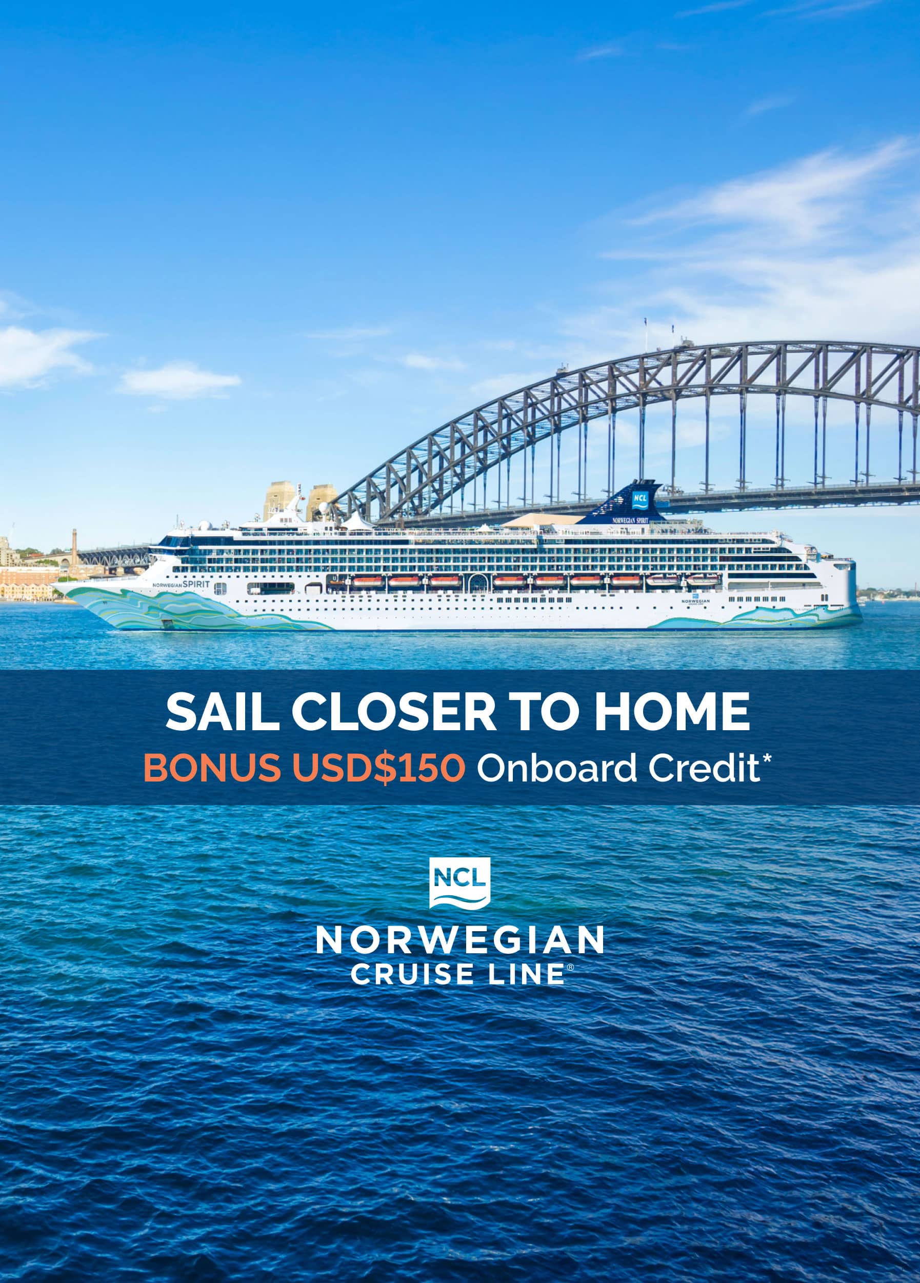 Bonus US$150 Onboard Credit: Onboard credit is valid for online or in-store purchases on Norwegian Spirit local sailings to or from Australia, New Zealand and the South Pacific. Valid for new bookings from 29 April 2026 until 31 May 2026. The onboard credit offer is not combinable with any other Cruiseabout marketing promotions. Not valid for employees or family of FCTG employees. Onboard credit will be added to bookings between 1-30 June 2026 after the promotion period concludes.