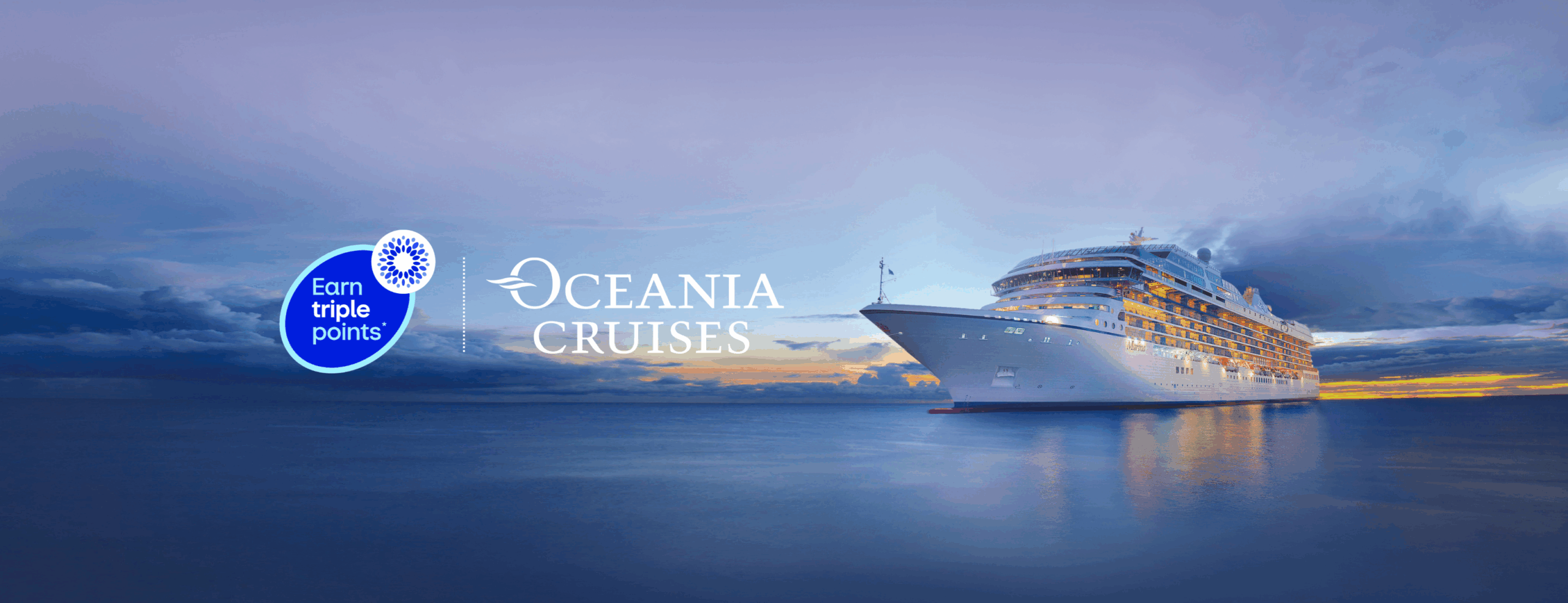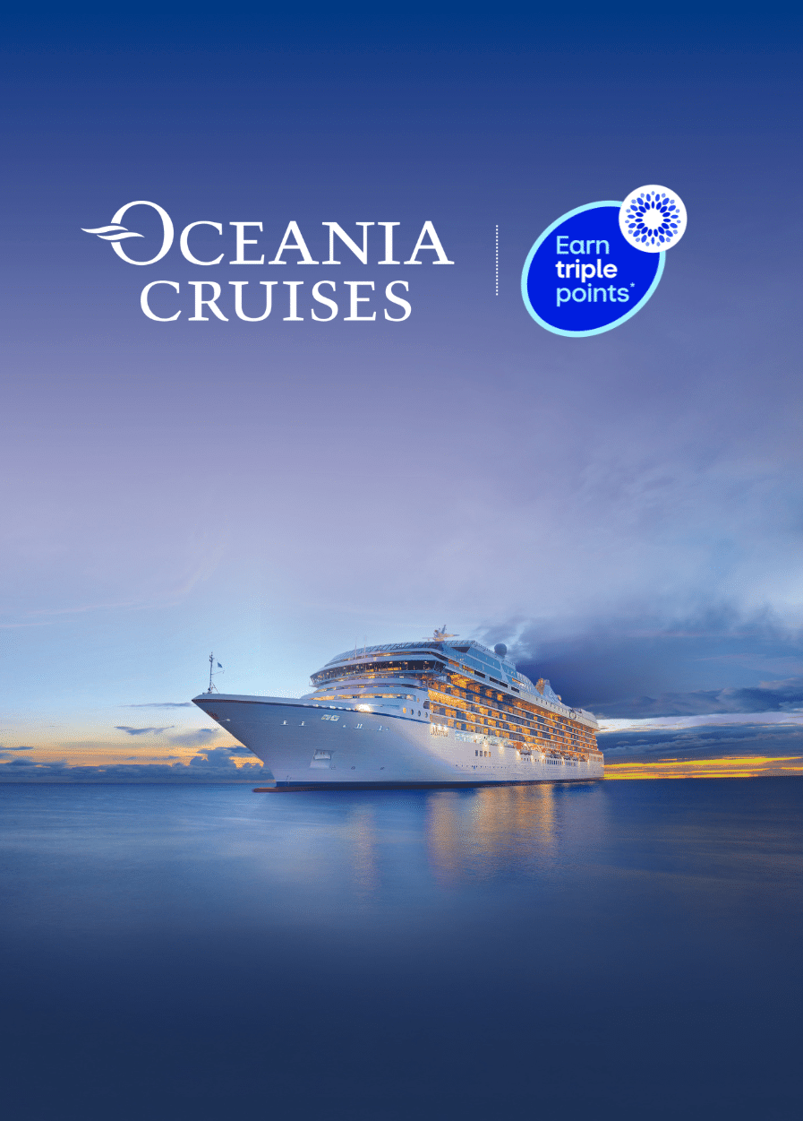 ^Book and pay required deposit in store or via phone for any Oceania Cruises product with Cruiseabout between the 25th of November 2025 to 10th of December 2025 and earn three times the points for every cash dollar you spend on the Eligible Booking. To be eligible, you must be a World360 Rewards member at the time of booking, during the promotional period.