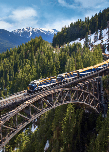 Unlike other trains, Rocky Mountaineer travels exclusively by daylight, ensuring you never miss a single view. From the comfort of your seat, gaze up at snow-dusted mountain peaks, across emerald glacier-fed lakes, and down into winding river valleys alive with wildlife. Between each breathtaking scene, you’ll enjoy engaging storytelling from onboard hosts, gourmet meals inspired by the regions you pass through, and the unhurried luxury of a journey designed to linger in the memory.
