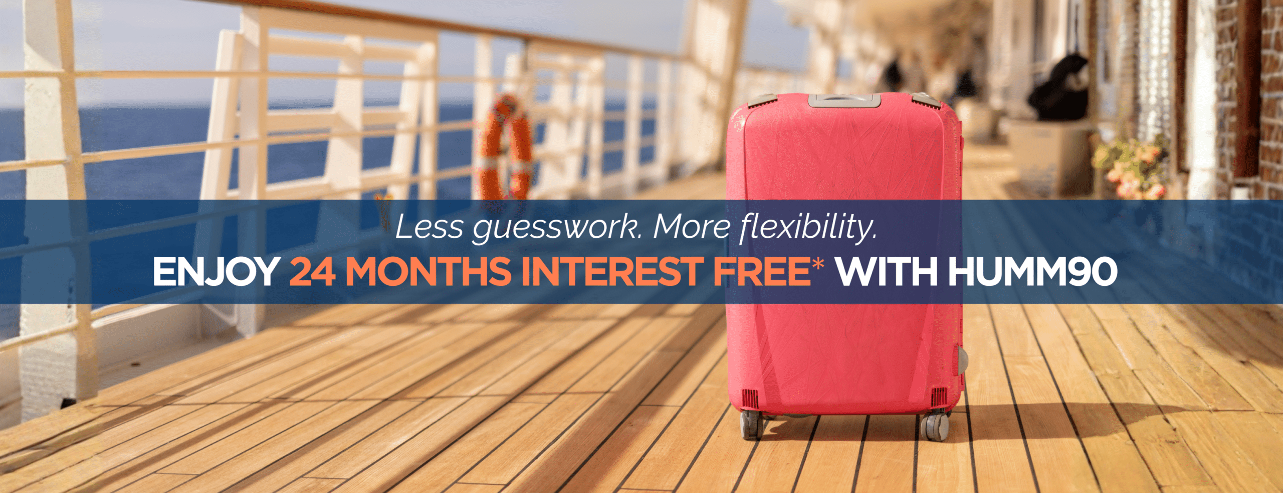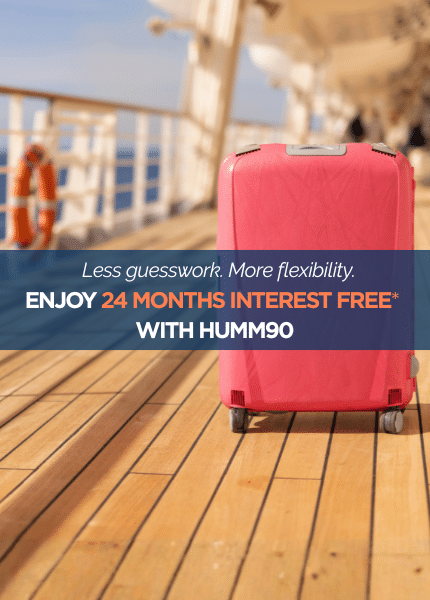For limited time with humm90 in Apil, you can lock in the cruise you want and spread the cost over 24 months interest free*, giving you the flexibility to book at the right time, not just when your budget allows.