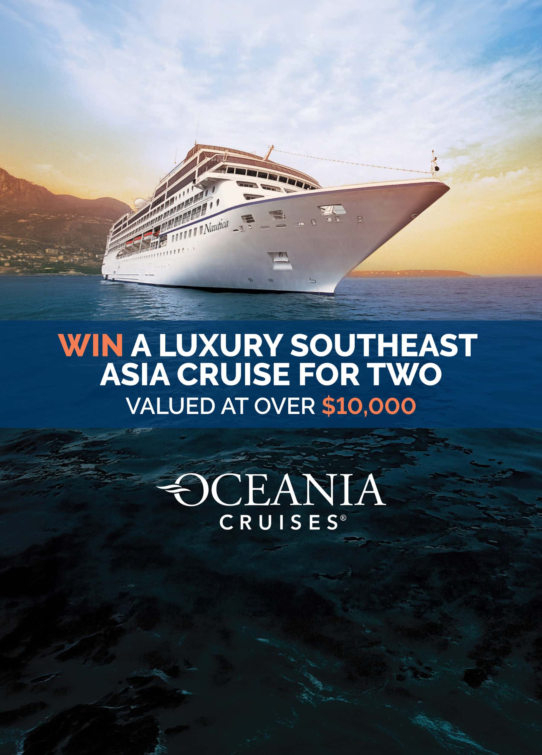Cruiseabout is giving eligible entrants the chance to win a 10-day Temples & Tropical Isles cruise for two onboard Oceania Nautica, sailing from Bangkok to Singapore from 13–23 November 2026. The prize is valued at $10,024.