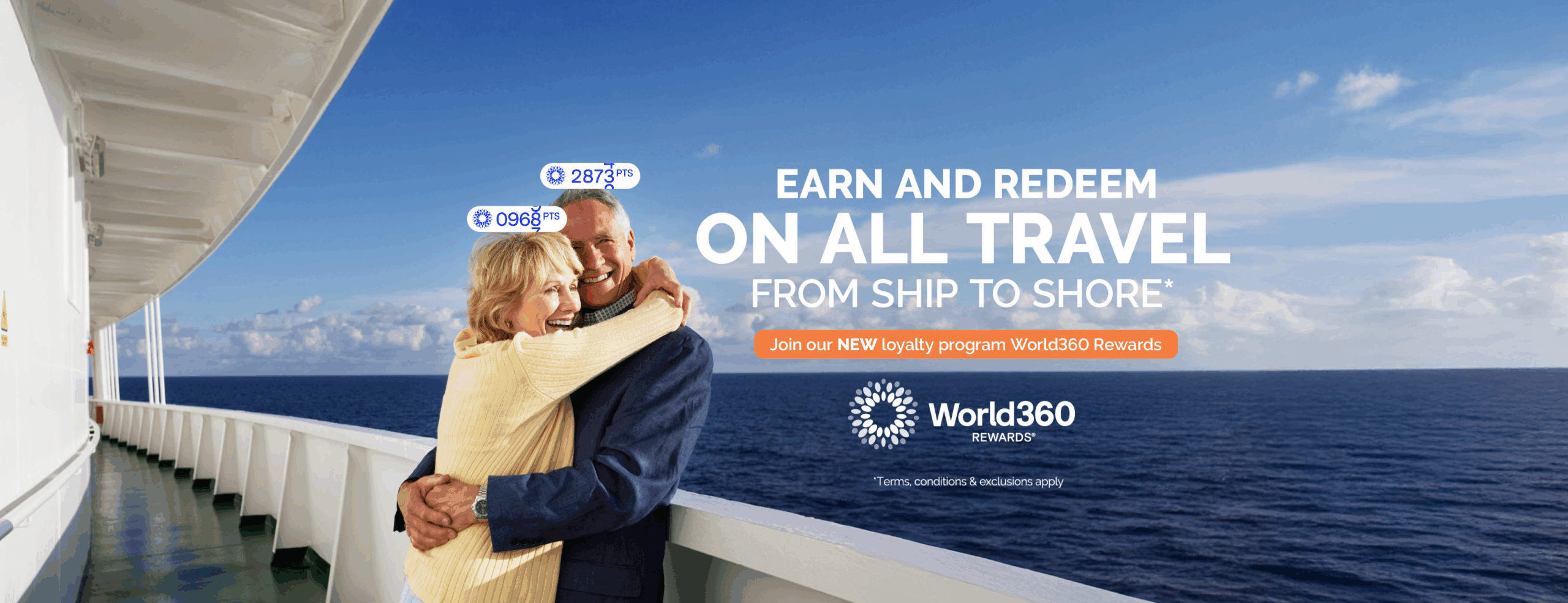 With World360 Rewards, you can earn and redeem points across 40+ cruise lines, plus flights, hotels, tours and more.