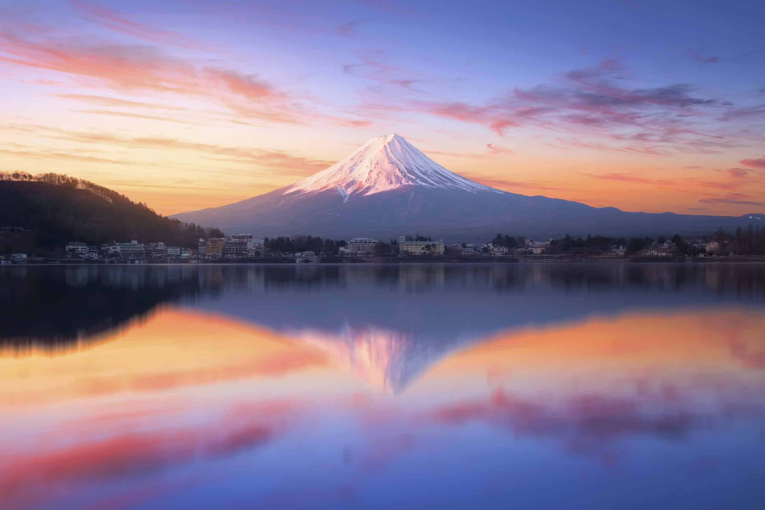 ...On clear days, particularly in winter, Mount Fuji (Fuji-san in Japanese) is visible from as far as Tokyo, 60 miles away. When Japan’s highest mountain is capped with snow, it’s a picture-postcard perfect volcanic cone. One of the best-known symbols of Japan, this iconic mountain has been considered sacred since ancient times and was even forbidden to women until the early 1900s.
