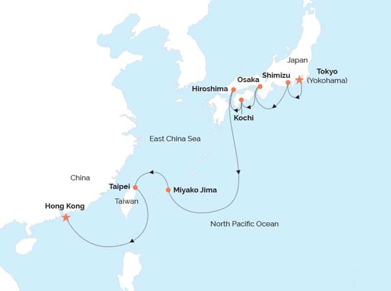 - 9 night cruise on Norwegian Jade from Tokyo to Hong Kong