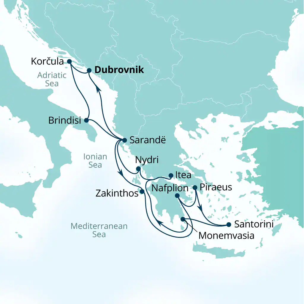 Embark on an ultra-luxury voyage aboard Seabourn Quest, where every detail is designed for indulgence as you sail from the storied walls of Dubrovnik through the glittering Adriatic and Aegean seas. Discover hidden treasures of the Dalmatian Coast, from the medieval charm of Korčula to the elegance of Brindisi, before gliding into the Ionian and Greek isles. Private-style yachting experiences await in Zakynthos and Náfplion, alongside curated cultural encounters in Athens, Delphi, and Santorini with its world-famous sunsets. Luxurious days at sea offer time to rejuvenate in the spa, savour gourmet dining, and relax in all-ocean-view suites. Blending opulent comfort with the timeless beauty of Croatia, Italy, Albania, and Greece, this is an unforgettable Mediterranean journey crafted for the discerning traveller.