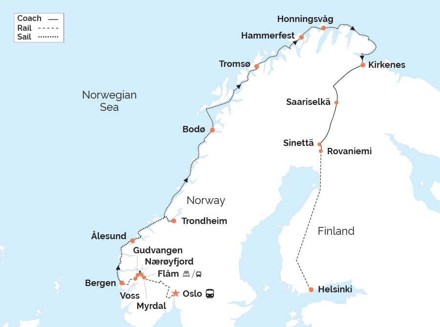 - 6 night Coastal Express voyage along Norway’s beautiful coast