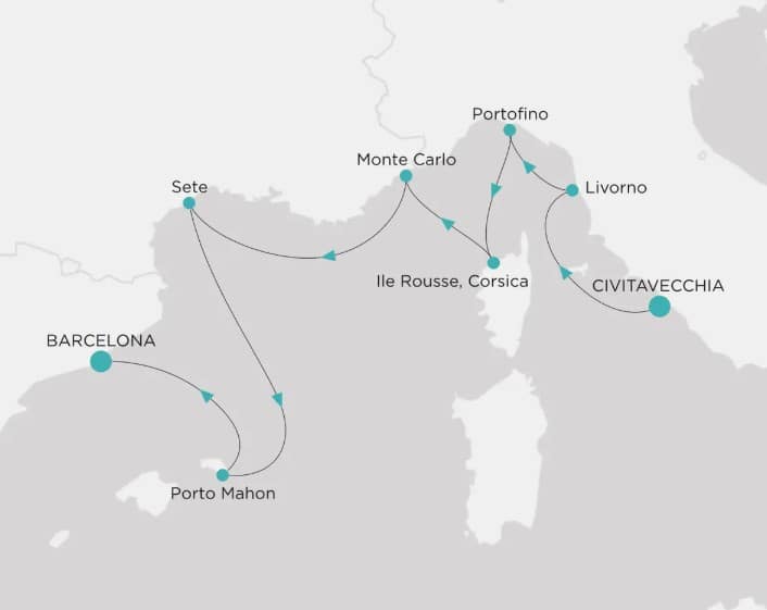 Sail from Rome to Barcelona along the Italian and French Rivieras on this cruise with a touch of added glamor. Departing Civitavecchia, we head for Livorno, gateway to Tuscany, where some of the finest wines are produced in the vineyards of Chianti. Lovely Portofino comes next, once a humble fishing village, now a chic destination favored by the jet-set. We make a quick hop to Ile Rousse, Corsica’s own Riviera-style seaside resort, before finding the glitz and glamour in Monte Carlo so irresistible we plan to stay overnight. Onwards across the French border to pretty Sète to stroll the banks of its canals before we sample island life Spanish style in Mahón on Menorca. Our final stop is Barcelona, where there’s fun in store for those who fancy staying around for a while longer.