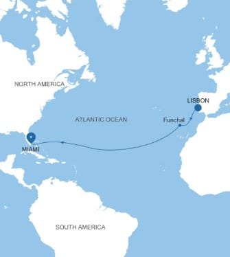 - 12 nights voyage on Silver Dawn from Lisbon to Miami in a suite