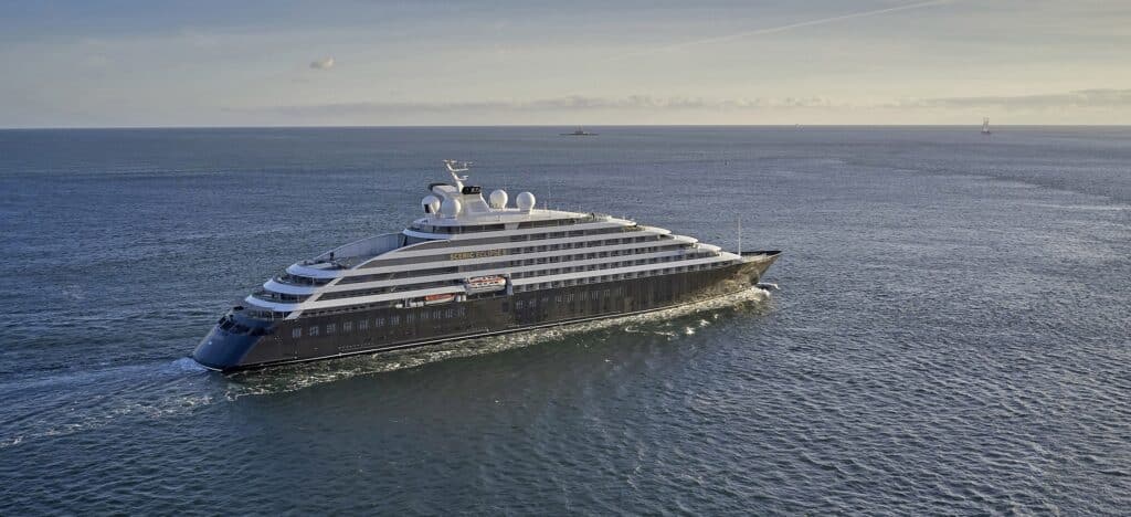 In 2019, the launch of Scenic Eclipse, The World’s First Discovery Yachts™, set the benchmark in ultra-luxury ocean cruising. Now, we invite you to experience a new era of expedition cruising with the highly anticipated arrival of Scenic Eclipse II. Combining innovative design and state-of-the-art technology with unrivalled discovery. Enjoy enhanced ultra-luxury spaces, new culinary experiences and unmatched exploration as you soar above by helicopter^. On the 13th April Scenic Eclipse II set sail from Lisbon, Portugal, on her inaugural voyage, the 12-day Incredible Iberian Discovery cruise to Barcelona, Spain. On board for her maiden voyage the Scenic Group Chairman and founder Glen Moroney and his wife, Karen Moroney, joined our loyal guests, invited VIPs, and dedicated Scenic Eclipse crew who have played a part in the vision and delivery of this much-anticipated state-of-the-art Discovery Yacht.