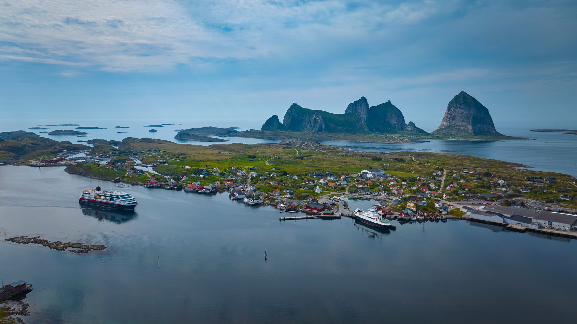 The ship calls at Bodø in the small hours of the morning and then Ørnes at 7am. We then cross over the Arctic Circle just after breakfast. Commemorate the moment with a tradition of tasting a spoonful of good ol’ Norwegian cod liver oil! We make a short stop at Nesna before sailing on to Sandnessjøen, gateway to the magnificent Helgeland Coast. Admire the stunning landscape of the Seven Sisters mountain range, with peaks up to 1,100m high. The tale goes that seven beautiful troll princesses, fleeing from an unwanted suitor, got caught out as the sun rose, turning them into the seven beautiful mountains you see today. You’ll also not want to miss views of Torghatten Mountain, with the distinctive hole in it. There is a local legend as to why and how this mountain came to have such a hole. Make sure you ask your Coastal Experience about it! We reach Brønnøysund mid-afternoon. Explore the bustling marina on a walk along Havnegata. In the centre of town is Brønnøy Church: a stone church in the Neo-Gothic style dating back to 1870. Our last stop of the day is the cosy fishing port of Rørvik in the picturesque Vikna archipelago.
