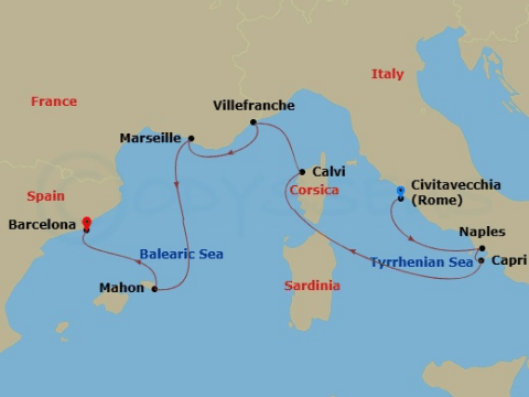 Uncover the hidden treasures of the Eternal City and experience the essence of Italian heritage in Naples’ story-steeped streets. Your voyage to Capri brings mythical beauty to enchant the senses, enhanced by Corsica’s peaceful landscapes and Villefranche-sur-Mer’s sparkling shores. In Marseille, vibrant traditions beckon, while Menorca offers an oasis of calm. Immerse yourself in a fusion of heritage, artistry, and Mediterranean beauty as you arrive at Barcelona’s colourful heart.