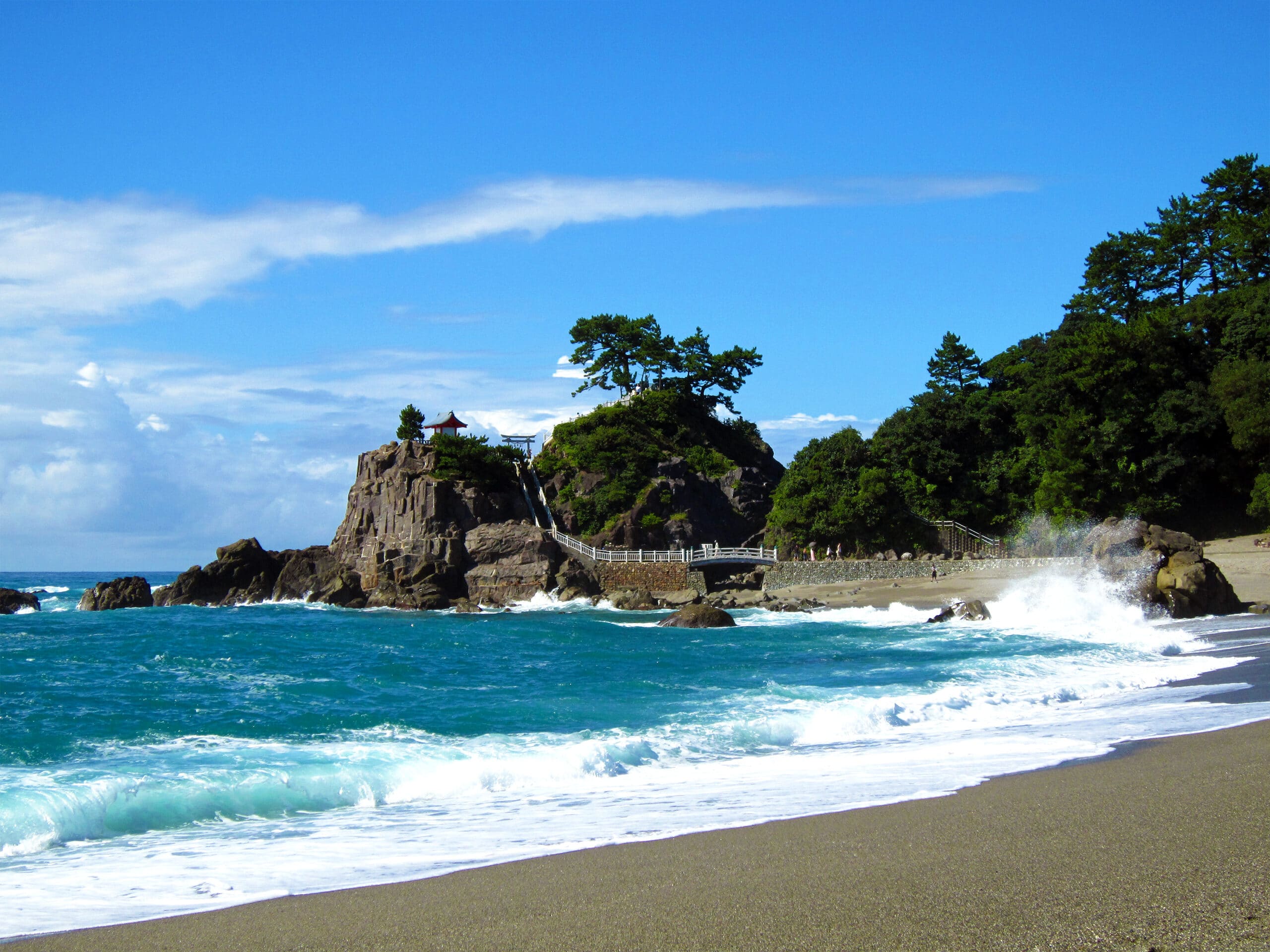 Kochi is one of the wettest places in Japan – and a frequent target for cyclonic storms or typhoons. Southeast of the city, warm oceans currents washing against the Aki Mountains create a subtropical landscape of hibiscus, palm and ficus at Muroto-Anan Quasi-National Park.